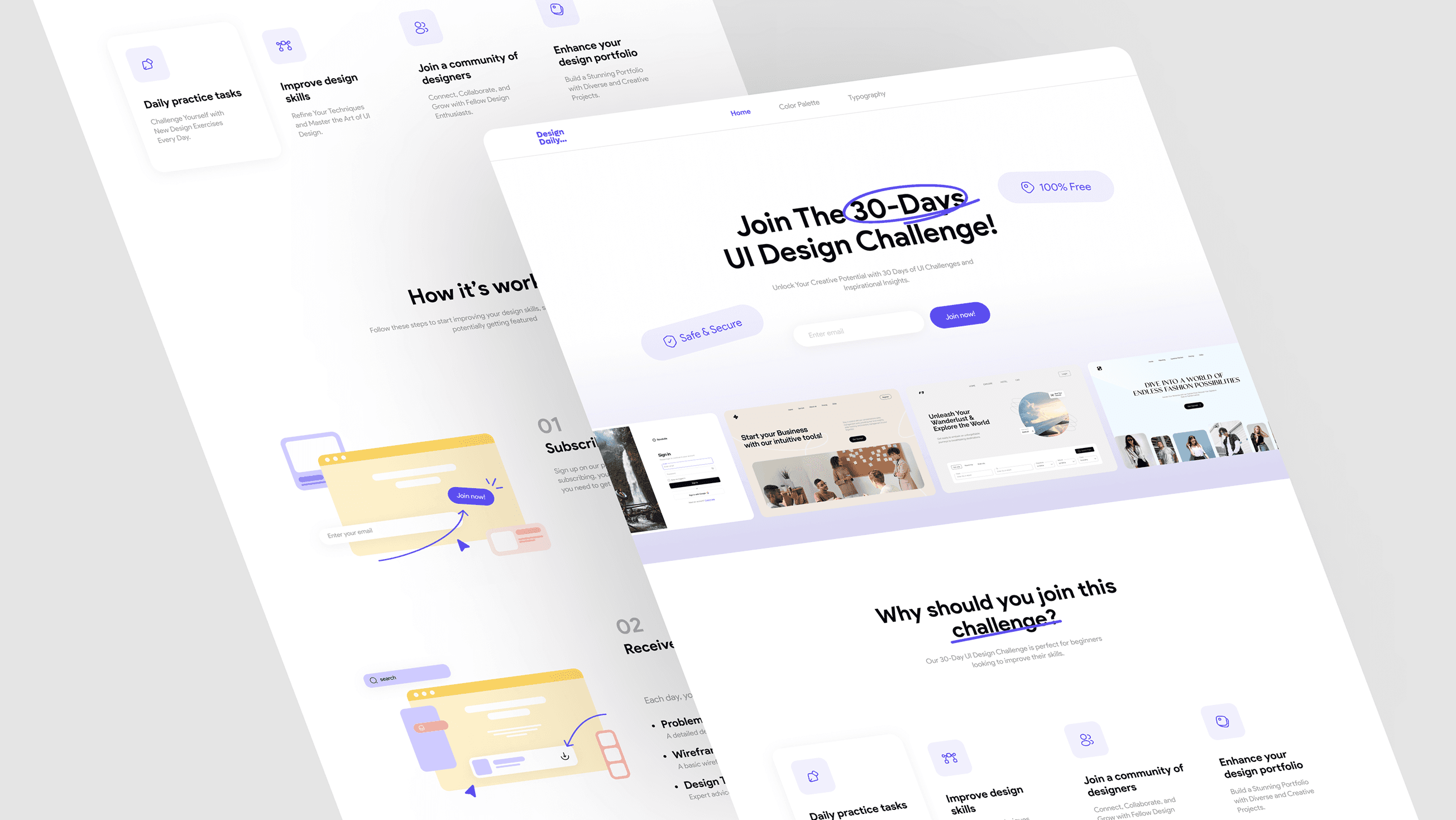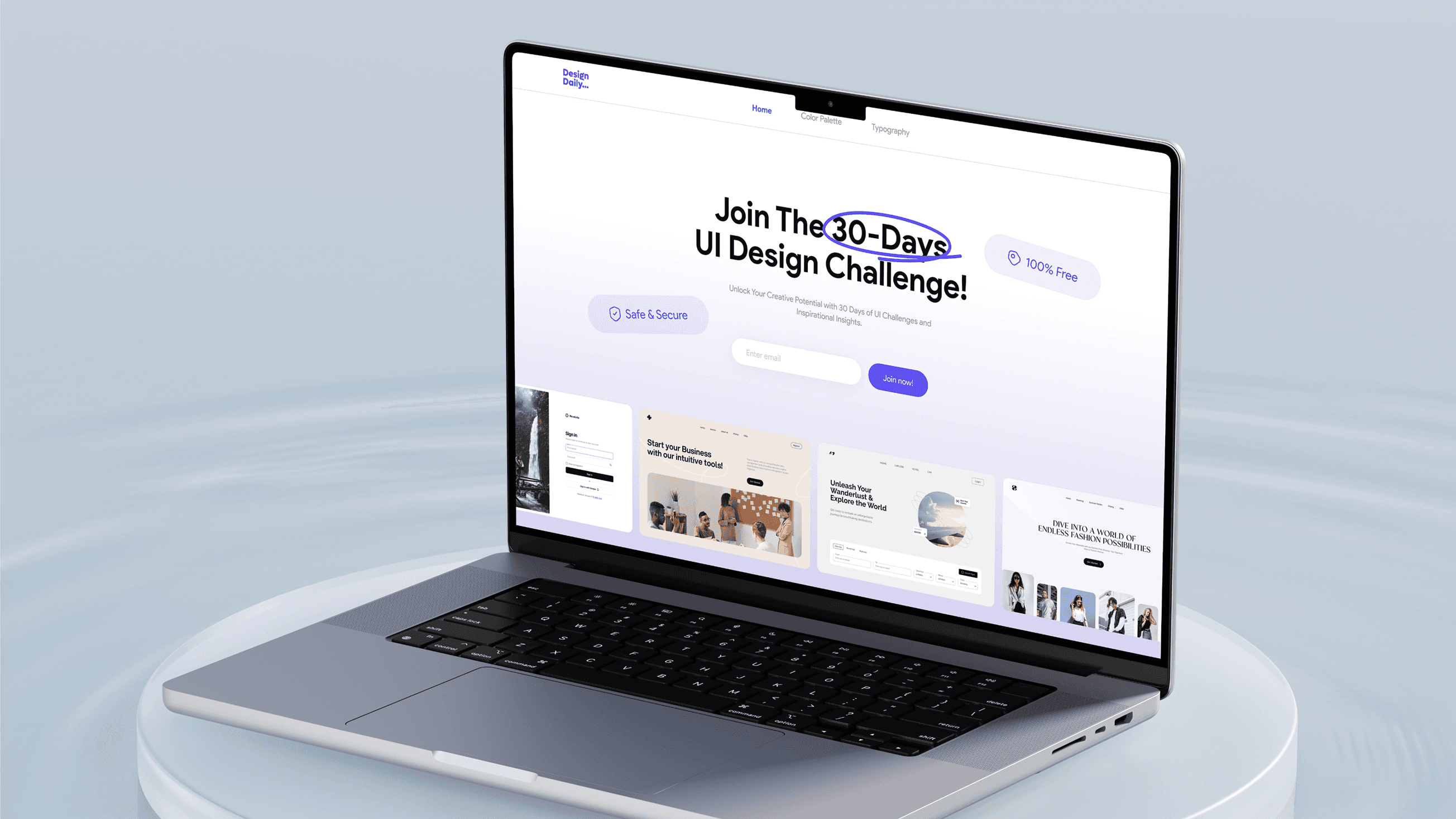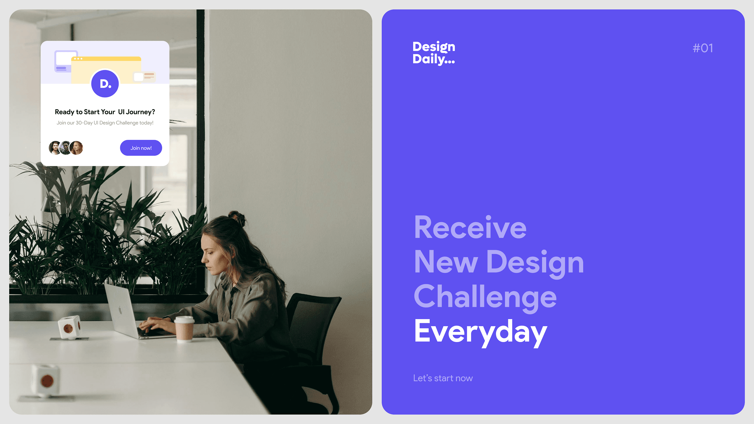 Provide a structured, daily design challenge to help users practice core UI/UX skills like layout, typography, and color theory.