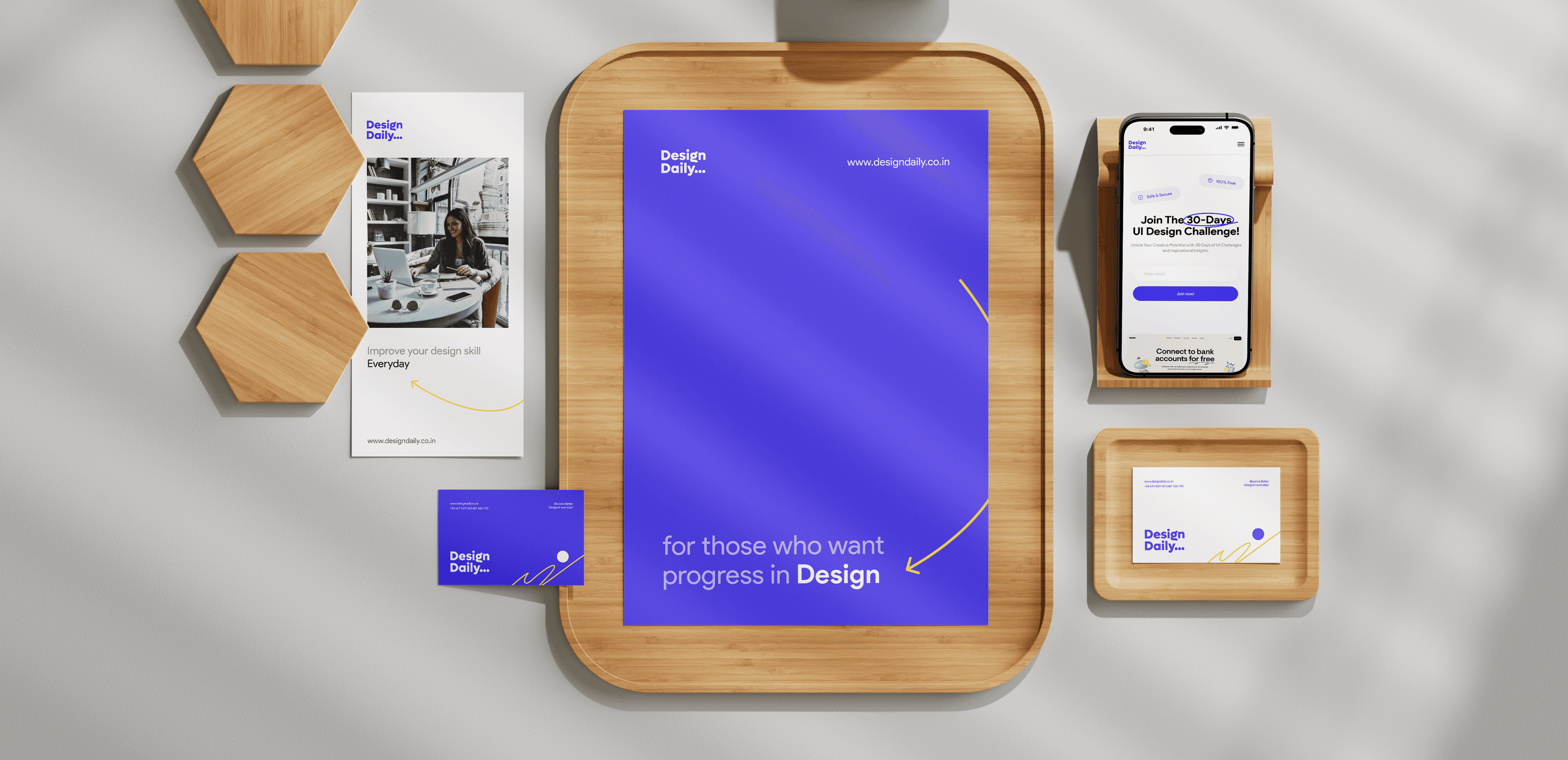 The visual identity uses a vibrant color palette with energetic tones like Majorelle Blue and Crayola Yellow to evoke creativity, trust, and motivation. These are balanced by soft, calming pastels that keep the overall look fresh and welcoming. Every visual element, from the curved letterforms to the inviting colors, is designed to reflect the brand’s mission: helping designers stay consistent, feel confident, and grow through practice.