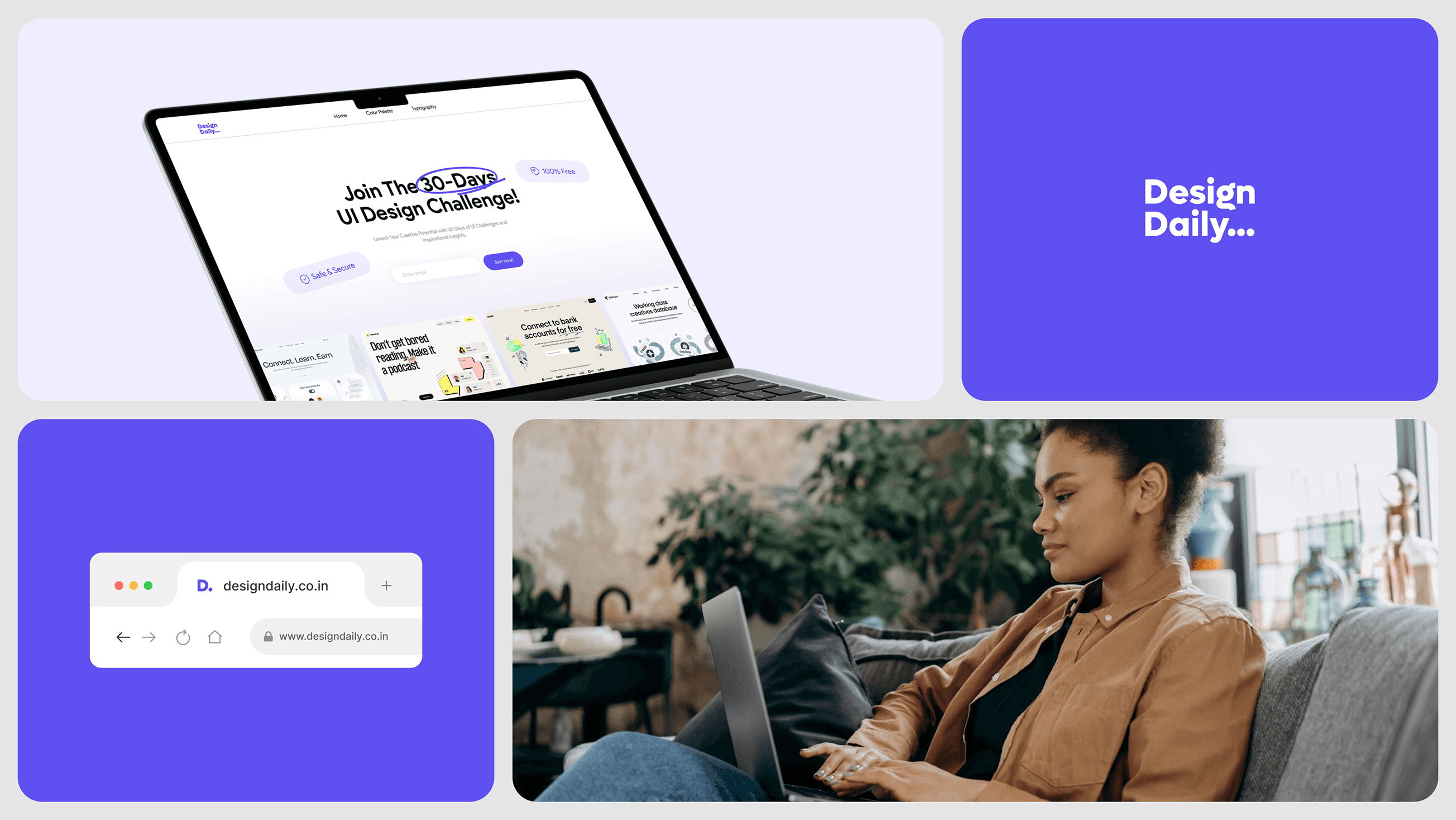 The Design Daily logo captures the spirit of daily progress and creative growth. Built around a simple wordmark, the logo features a playful ellipsis (“...”) at the end — symbolizing continuity, momentum, and the idea that design is a never-ending journey. The typography is bold and rounded, making it feel approachable, friendly, and supportive — just like the platform itself.
