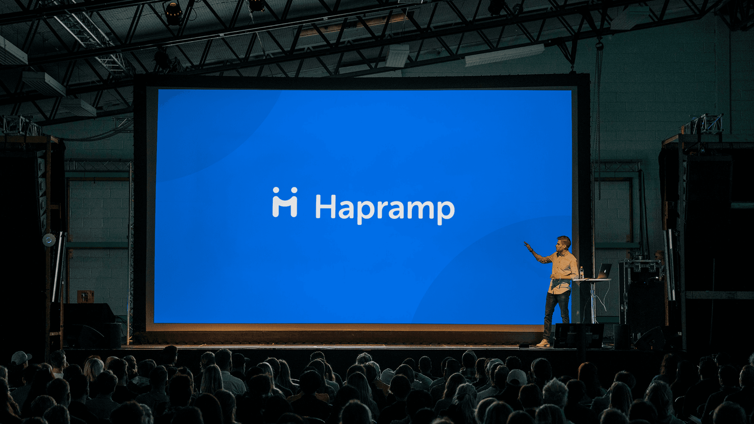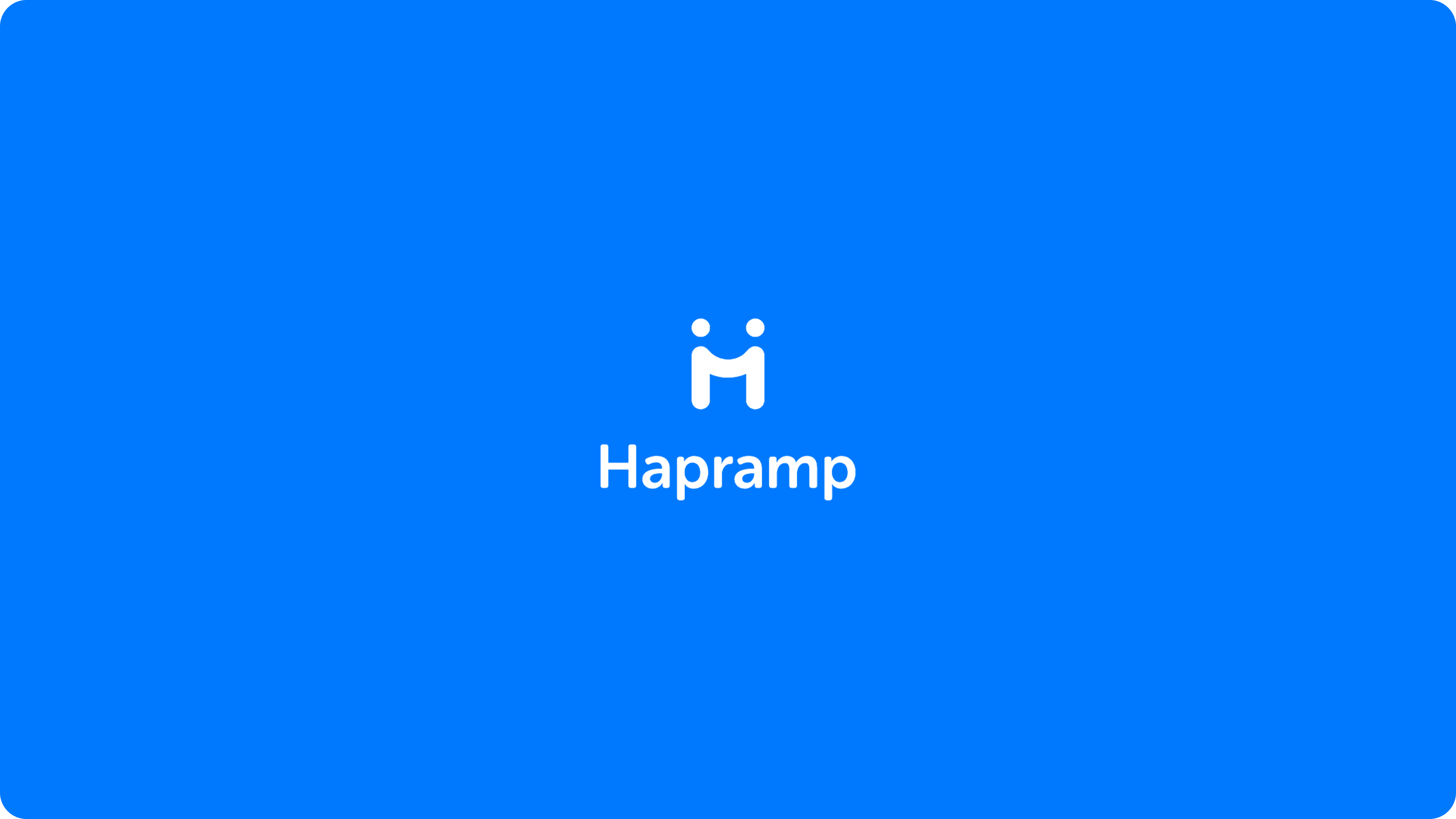 The Hapramp logo beautifully combines the letter “H”, a smiling face, and a subtle person-like shape to represent community, happiness, and individuality. Its rounded, friendly design reflects the platform’s mission to foster real, joyful connections.
