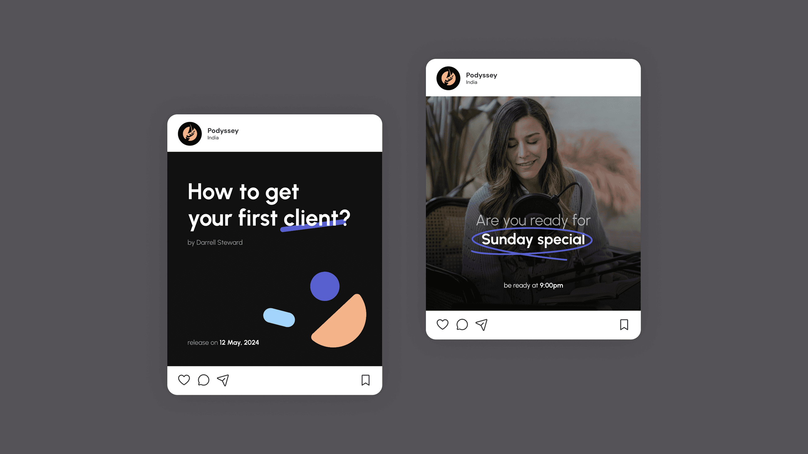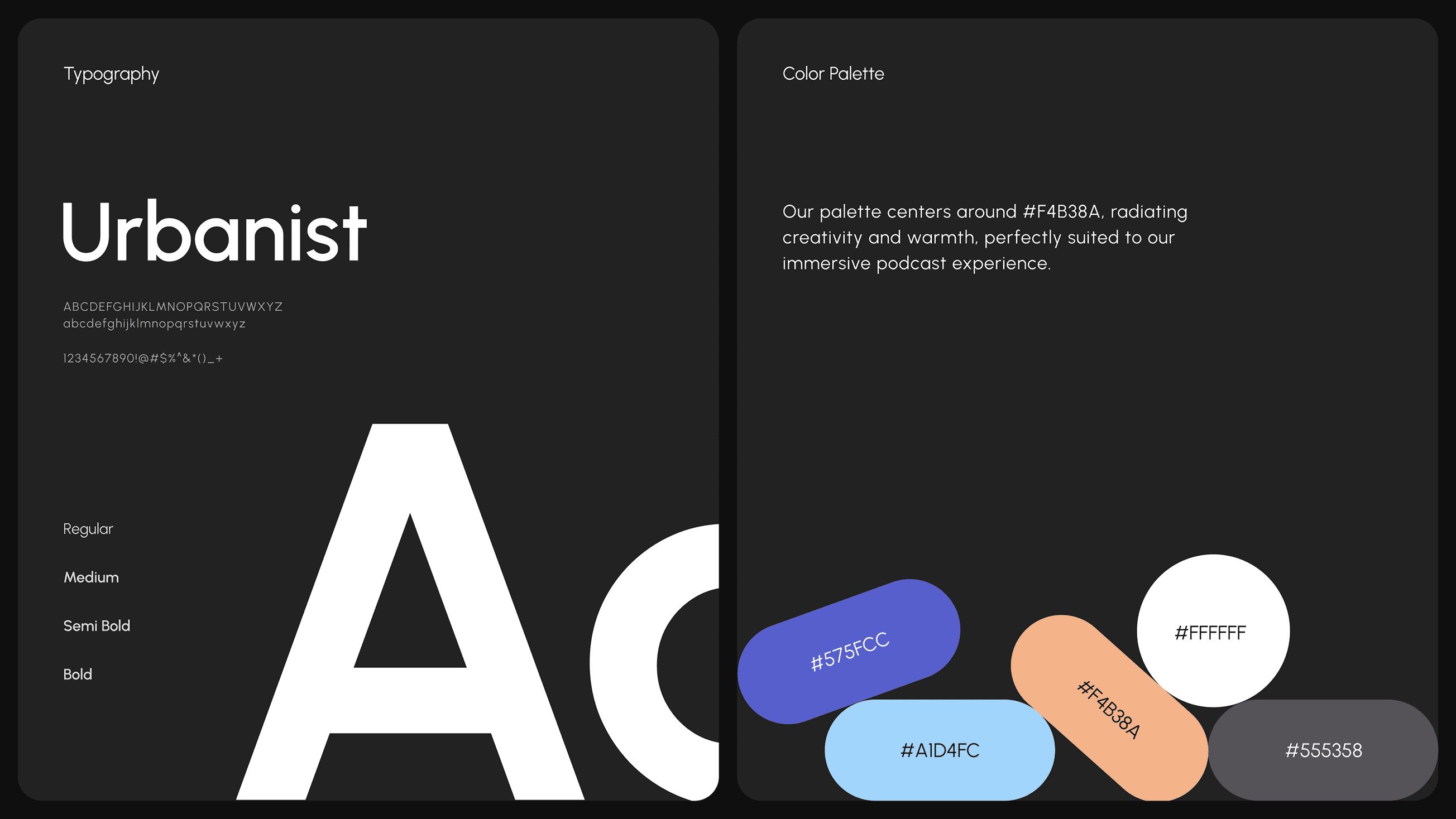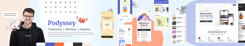The visual style of Podyssey combines minimalism with vibrant accents to create a fresh and engaging user experience. Clean layouts and ample white space guide users effortlessly through content, while bold typography highlights important information. The color palette balances calming neutrals with energetic pops of color to evoke both trust and excitement, reflecting the brand’s mission to make podcast discovery both easy and enjoyable.