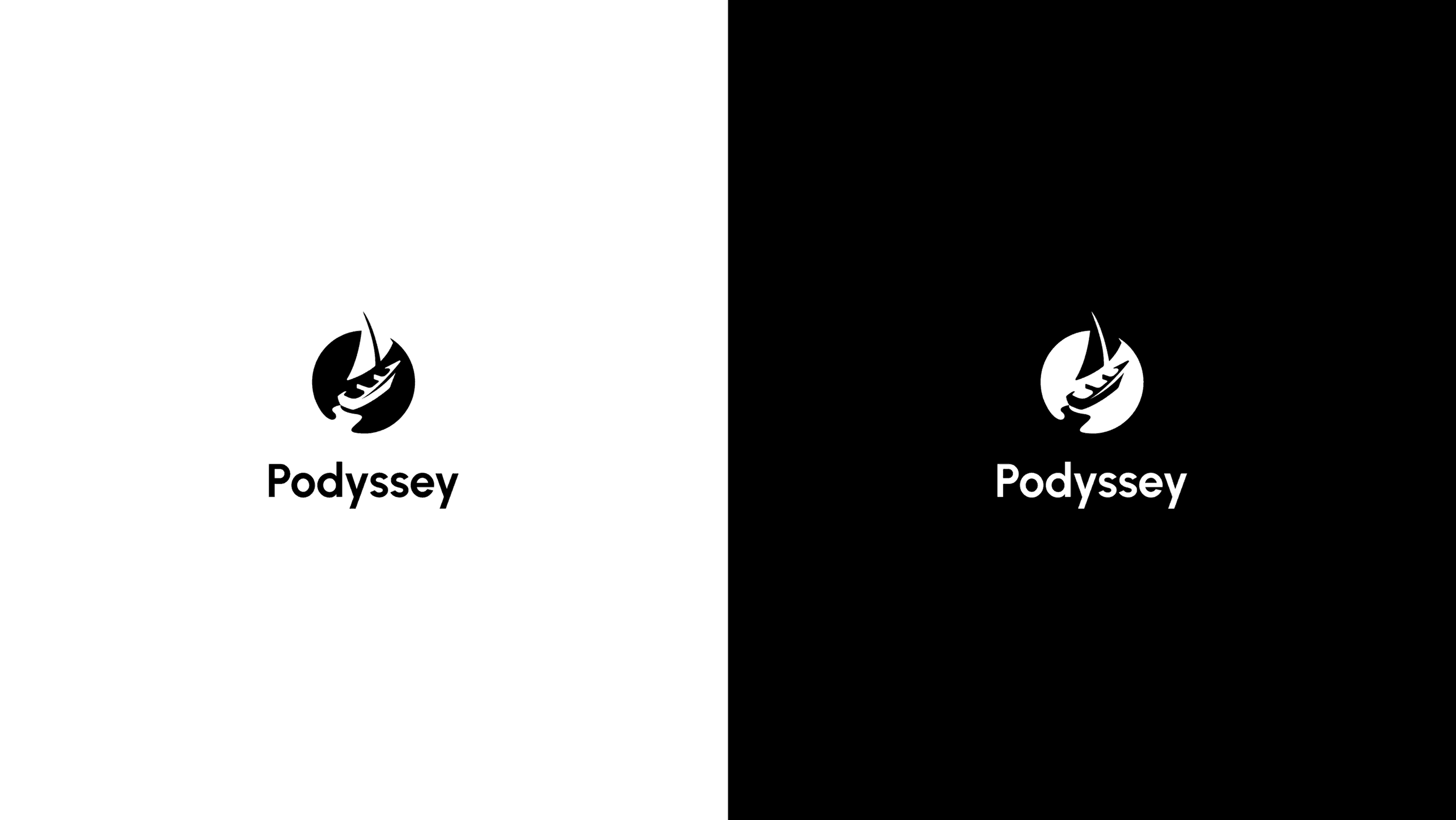 The Podyssey logo captures the spirit of discovery and storytelling through a bold, minimalist emblem. A stylized boat sailing across a circular wave represents both journey and sound — a perfect metaphor for the podcast experience. The clean sans-serif wordmark complements the icon, reflecting a modern and approachable identity. This mark is versatile across platforms and scales well for both app icons and print collateral. The identity system uses soft earthy tones, reinforcing warmth, creativity, and ease of use — values at the heart of the Podyssey brand.