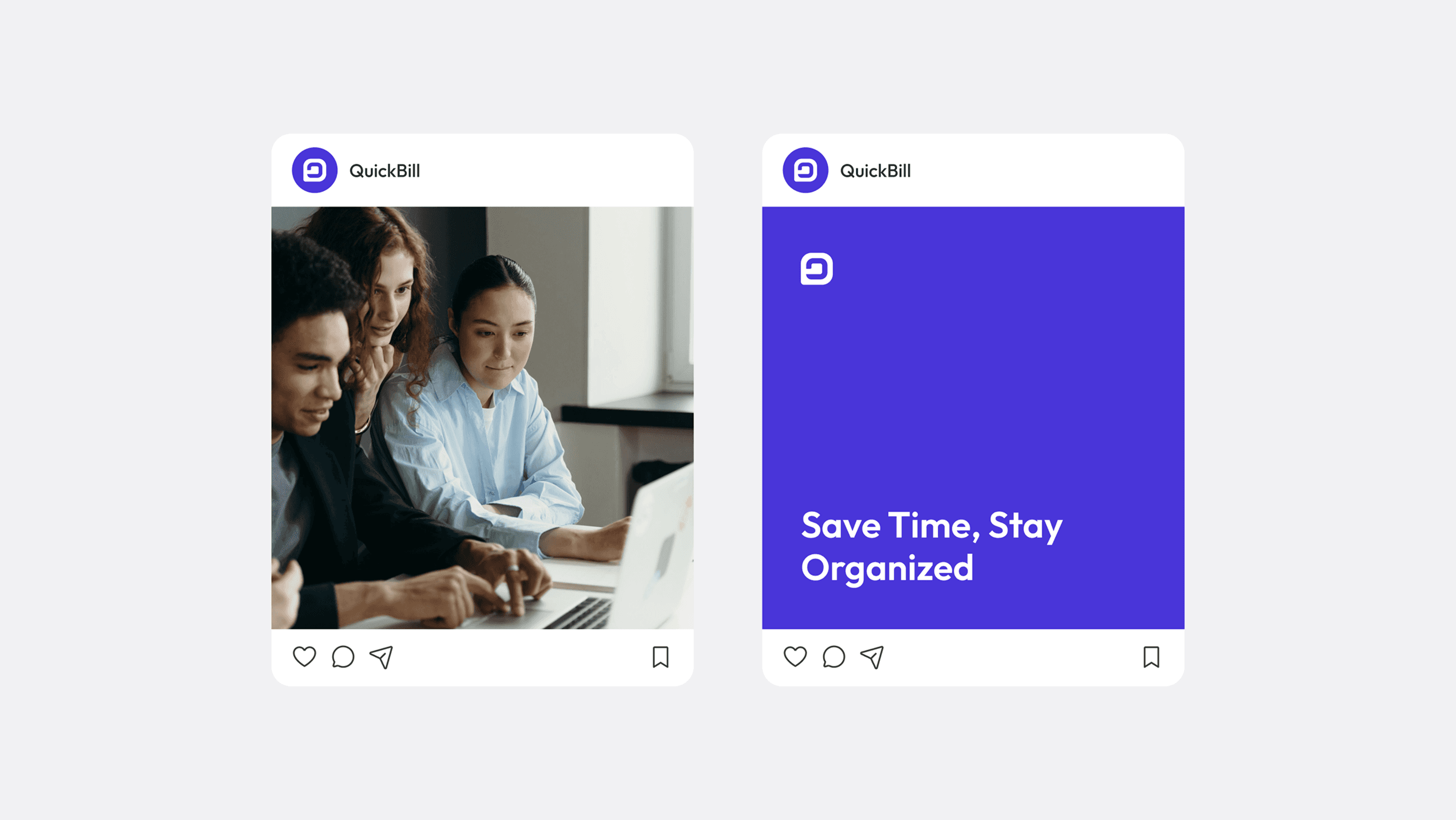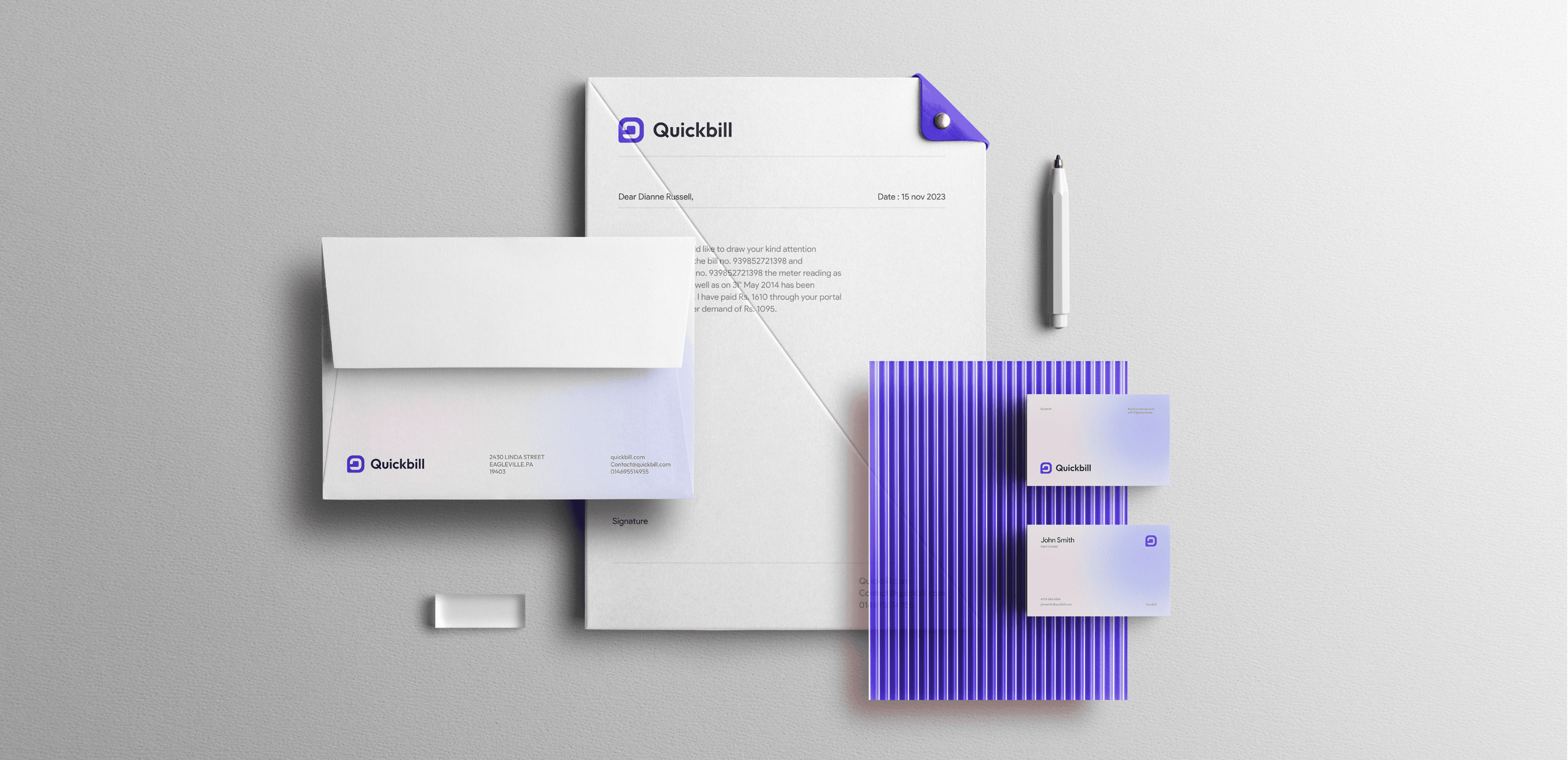 The QuickBill logo blends visual speed and structure. Inspired by the idea of organized motion, the mark suggests swift documentation while retaining a sense of balance. Typography was selected for clarity and digital friendliness, and the mark scales well across app icons, documents, and branding assets. The identity system includes a structured grid, spacious padding, and bold accent colors that enhance usability. The result is a memorable, flexible logo that embodies what QuickBill promises: fast, professional billing — always ready.