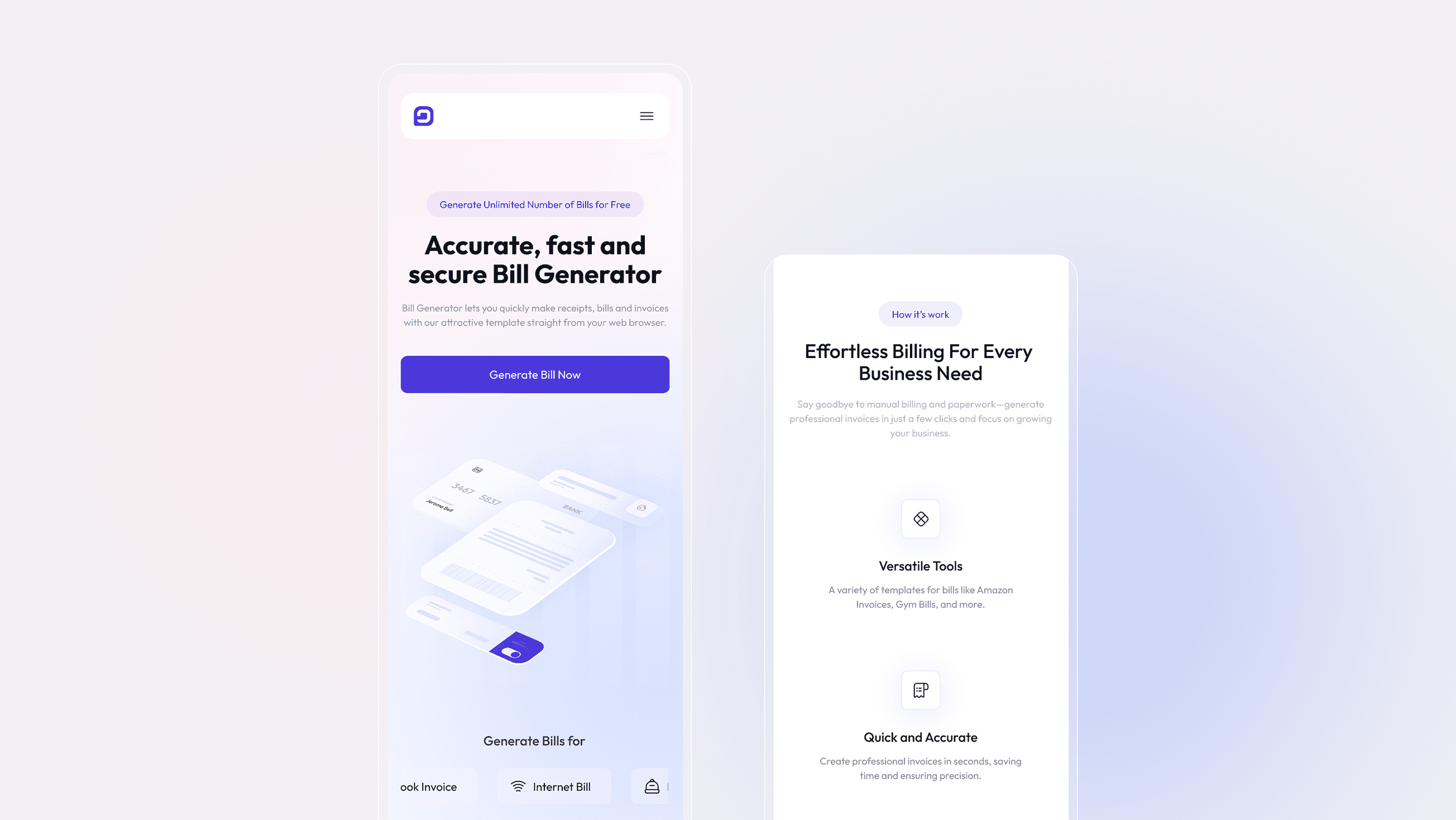 QuickBill is a professional invoice and bill generator that helps businesses, freelancers, and individuals create beautiful, accurate bills in seconds. Built for ease and speed, it simplifies documentation, enhances credibility, and saves time. Whether you're billing clients or recording transactions, QuickBill delivers with clean design and smart features.